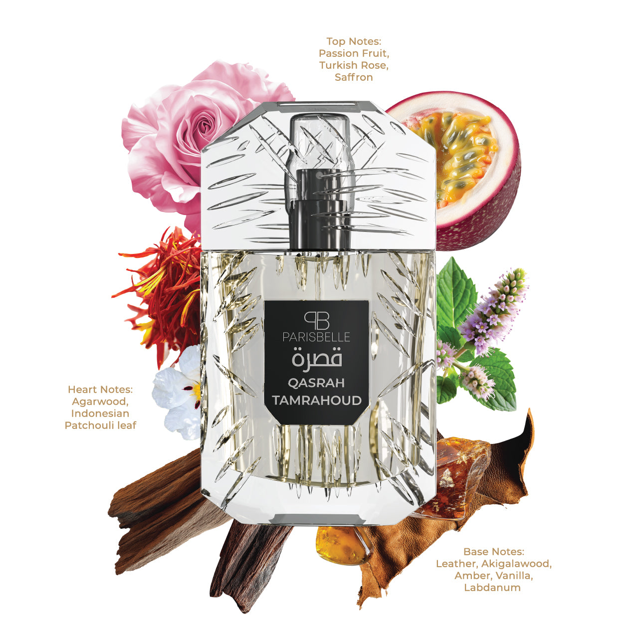 It begins with a vibrant spark of passion fruit and radiant saffron, delicately entwined with the timeless elegance of Turkish rose an opening that feels both luminous and intriguing. At its heart, precious agarwood and Indonesian patchouli leaf unfold, revealing an earthy richness that deepens the scent’s mysterious character. The finale settles into a luxurious embrace of leather, Akigalawood, amber, vanilla, and labdanum, leaving behind a bold, seductive trail that lingers like a mark of true distinction.